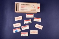 Chemiczne MEMORY składa się z 40 elementów. Wielobarwne elementy zawierają hasła: nazwy lub wzory substancji chemicznych, nazwy zjawisk, pojęć. Na jednobarwnych elementach znajduje się wyjaśnienie haseł - właściwości substancji chemicznych, definicje pojęć, zjawisk. Gracze mają kostki odwrócone grzbietem do góry wybierają losowo jeden element z kolumny "haseł" jeden z kolumny "wyjaśnień". Odczytują głośno, jeśli wybrane elementy tworzą parę, to gracz odkłada ją i zyskuje 1 pkt., jeżeli nie odkłada je na to samo miejsce grzbietem do góry i wszyscy starają się zapamiętać miejsce odczytanych elementów gry. Zabawa trwa tak długo aż wszystkie pary zostaną dobrane. Wygrywa osoba, która ma ich najwięcej. Gra zapewnia koncentrację wszystkich uczestników, a wielokrotne odczytywanie haseł i wyjaśnień zapewnia utrwalenie wiadomości.