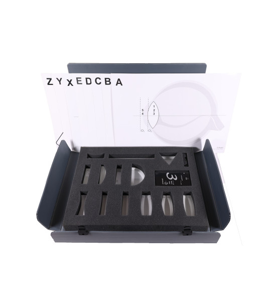 • arkuszy roboczych (8 sztuk) do bardzo prostego i szybkiego przygotowania ćwiczeń. Arkusze w pudełku: A - Model ludzkiego oka B - Aparat fotograficzny C - Teleskop Galileo D - Kepler teleskop E - Arkusz demonstracyjny refrakcji i odbicia X - Znaczące promienie - wypukły Y - Znaczące promienie - wklęsły Z - Arkusz rozpraszający światło demostracja