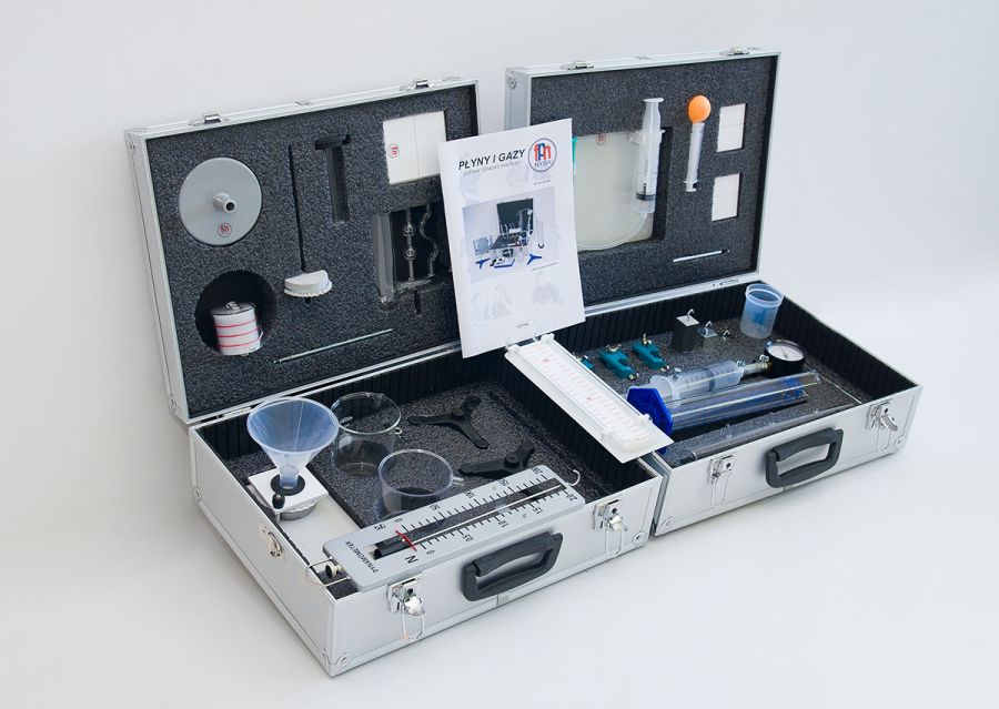 Zestaw przyrządów doświadczalnych umożliwiających prezentację i sprawdzenie słuszności praw z zakresu mechaniki płynów i gazów oraz demonstrację podstawowych zagadnień związanych z szeroko rozumianą nauką o płynach i gazach.