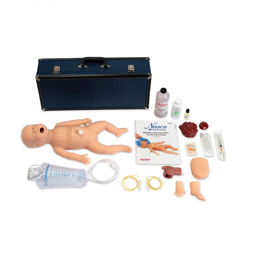 Fantom noworodka do ALS oraz pielęgnacji pomocny w nauce wykonywania procedur pielęgnacyjnych, pielęgniarskich oraz ratunkowych. Model pozwala na rozwijanie takich umiejętności jak wentylacja, intubacja dróg oddechowych, drenaż klatki piersiowej, infuzje czy zakładanie sondy żołądkowej. Ponadto umożliwia trening procedury resuscytacyjno – oddechowej. Dzięki wymiennym modułom płuc ćwiczący może stwierdzić, czy klatka piersiowa unosi się prawidłowo lub jednostronnie. Drożna pępowina umożliwia podawanie leków oraz aspirację. Dzięki miękkiej i trwałej skórze, fantom wygląda realistycznie co zwiększa zaangażowanie u ćwiczących.