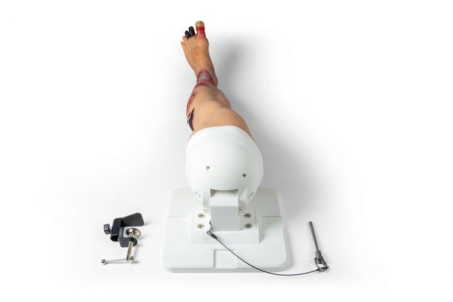 Symulator Medycznej Pielęgnacji Nogi został zaprojektowany do edukacji medycznej i szkoleń w zakresie wizualnej oceny i różnicowania szerokiego zakresu patologii kończyn dolnych i rodzajów ran. Ten symulator dokładnie odzwierciedla ludzką nogę od stopy do połowy uda. Wspiera umiejętności diagnostyczne w zakresie pielęgnacji ran, oceny naczyniowej, dermatologii i ogólnego szkolenia medycznego.