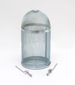 Konstrukcja klatki Faradaya bazuje na metalowej tarczy o średnicy 165 mm. Na tarczy ustawiany jest klosz wykonany z metalowej siatki, na którego wierzchołku znajduje się otwór z gniazdem. W gnieździe umieszcza się metalową główkę, która na jednym końcu ma łańcuszek, a na drugim pręt z kulką. Łańcuszek pozwala na łączenie główki z kulką elektroskopu. Z przyrządem dostarczane są dwie główki. Jedna z nich ma pręt z kulką i łańcuszkiem izolowane od gniazda siatki.