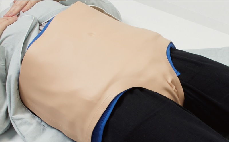 Model zaprojektowany do nauki badania inwolucji macicy po porodzie. Może on być noszony przez pozoranta lub założony na fantom. Model przedstawia stan inwolucji macicy do 5 dni po porodzie. Model można wykorzystać zarówno do ćwiczeń z zakresu opieki poporodowej jak i z treningu komunikacji.